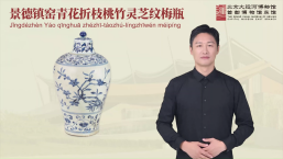 景德镇窑青花折枝桃竹灵芝纹梅瓶